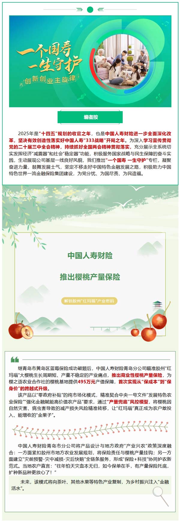 乡村振兴|中国人寿财险推出樱桃产量保险