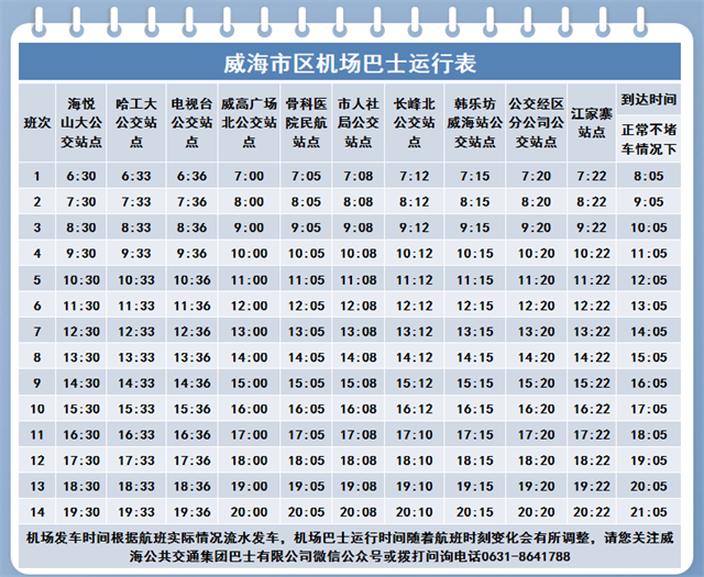 机场巴士时刻表