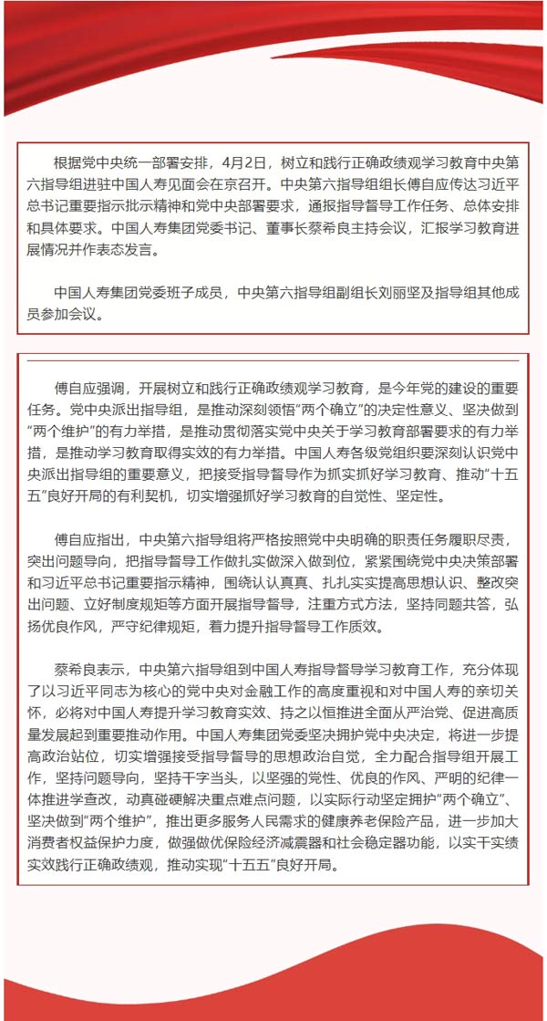 树立和践行正确政绩观学习教育中央第六指导组进驻中国人寿见面会